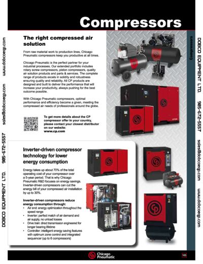 It’s all about powering your productivity. CP helps make tough jobs easier, reliable, robust compressors and tools for vehicle servicing, manufacturing and construction.
